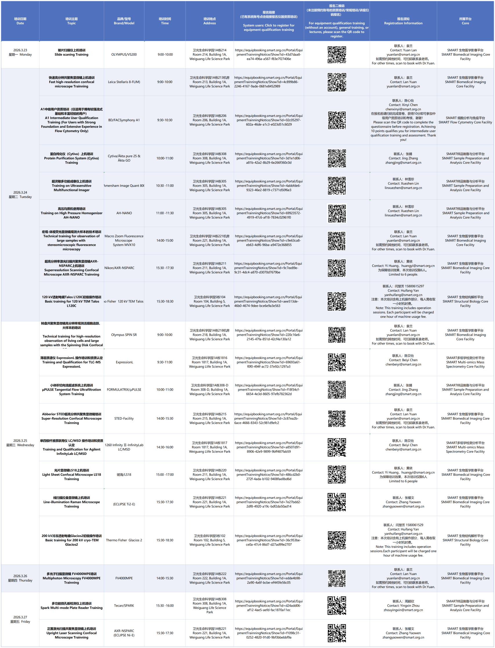 深圳医学科学院生物医学实验技术中心下周(3月23日-3月29日)的仪器设备培训信息如下所示,诚挚邀请大家参加!如果您有任何疑问,请随时联系。更多培训信息可参见海报及在线培训信息表:https://kdocs.cn/l/ctNs2AVzPFmz。